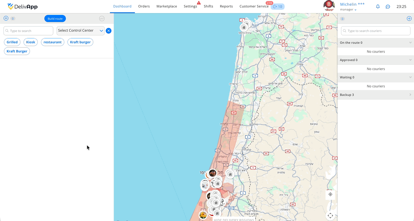 היכרות עם הגיאוגרפיה של אזורי השירות (רדיוסים / שכונות) ועם תעריפי המשלוח.