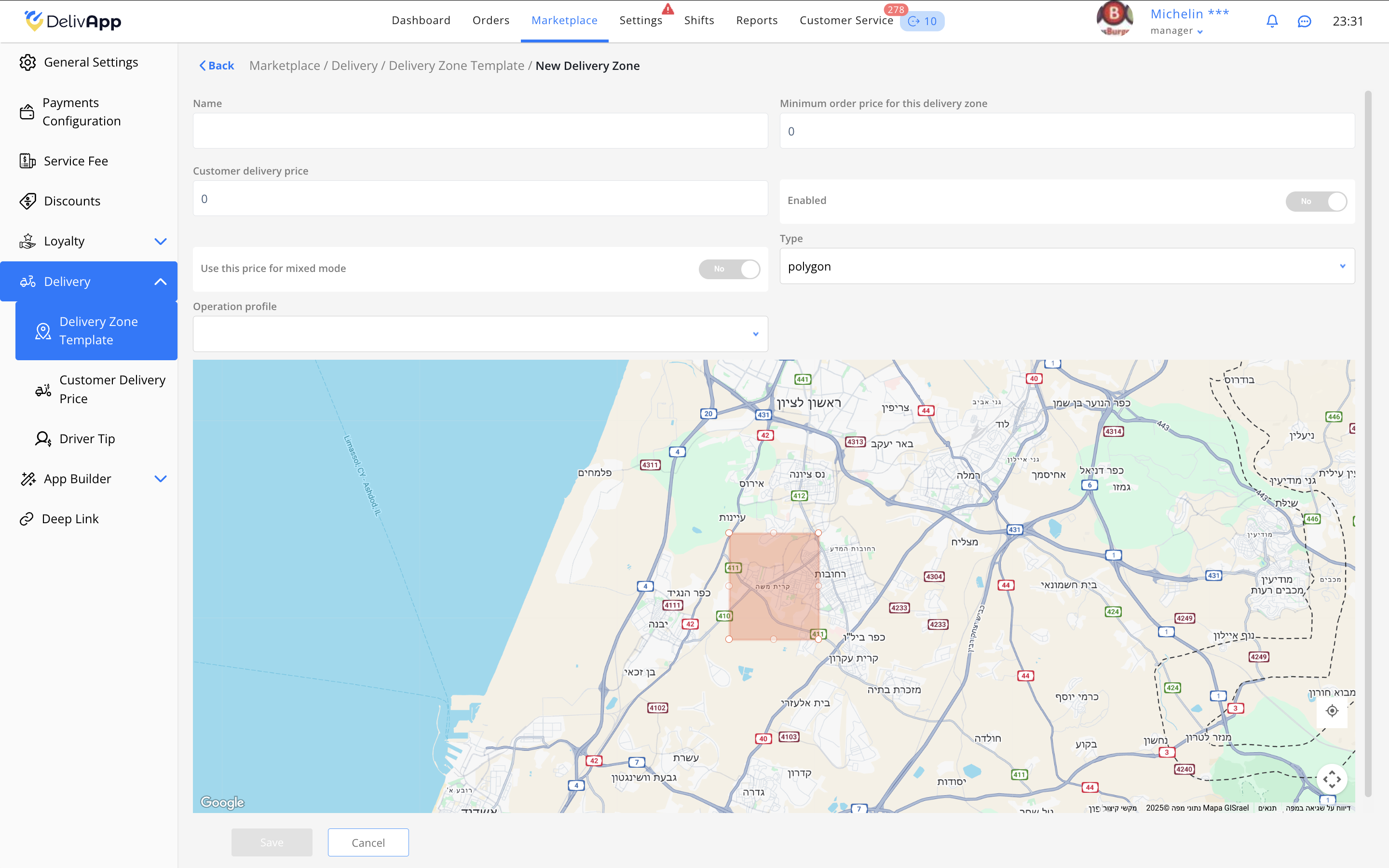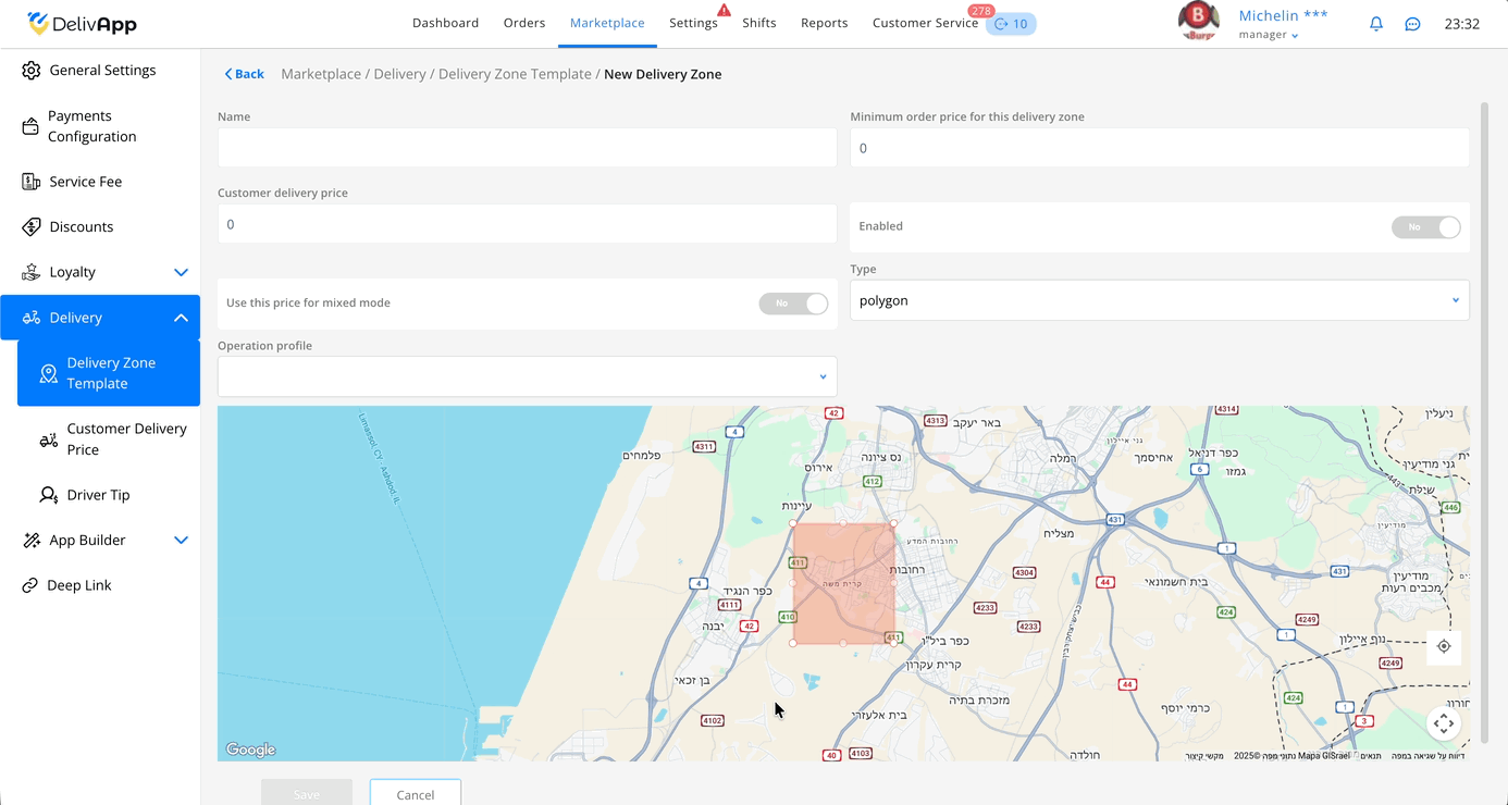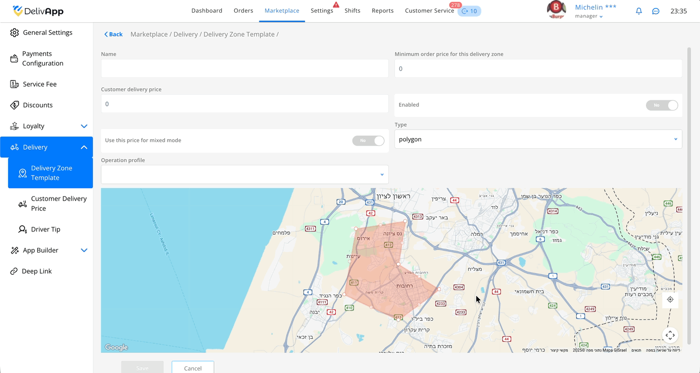 טיפ: מומלץ לתת לאזורים שמות ברורים (לדוגמה: פוליגון מרכז, מעגל צפון 5 ק״מ) — כך קל יותר לתחזק את המערכת.