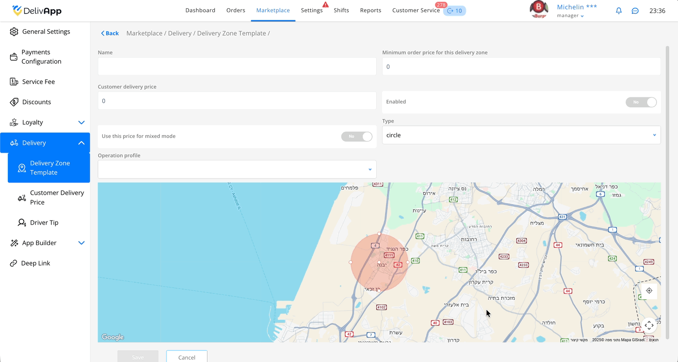 נגדיר את הגדרות המשלוח במרקטפלייס: ניצור אזורי חלוקה, נגדיר את שיטת חישוב מחיר המשלוח (לפי מרחק / לפי אזורים / מעורב), ונפעיל טיפ לשליח. לאחר ההגדרה, הלקוחות יראו מחיר משלוח מדויק ואפשרויות טיפ מוכנות, וההזמנות יחולקו בהתאם לאזורים שהגדרתם.